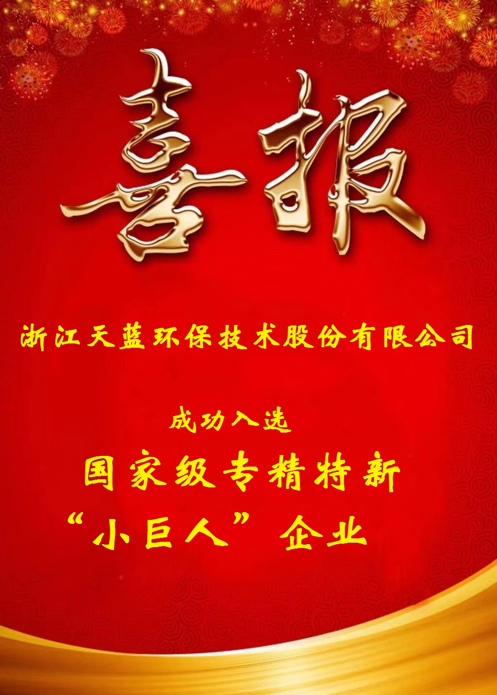 近日,浙江省經(jīng)濟(jì)和信息化廳發(fā)布了《關(guān)于浙江省第四批專精特新“小巨人”企業(yè)和第一批專精特新“小巨人”復(fù)核通過企業(yè)名單的公示》,天藍(lán)環(huán)保憑借在大氣污染治理領(lǐng)域的技術(shù)創(chuàng)新綜合實力和市場占有率,成功入選國家級專精特新“小巨人”企業(yè)名單。